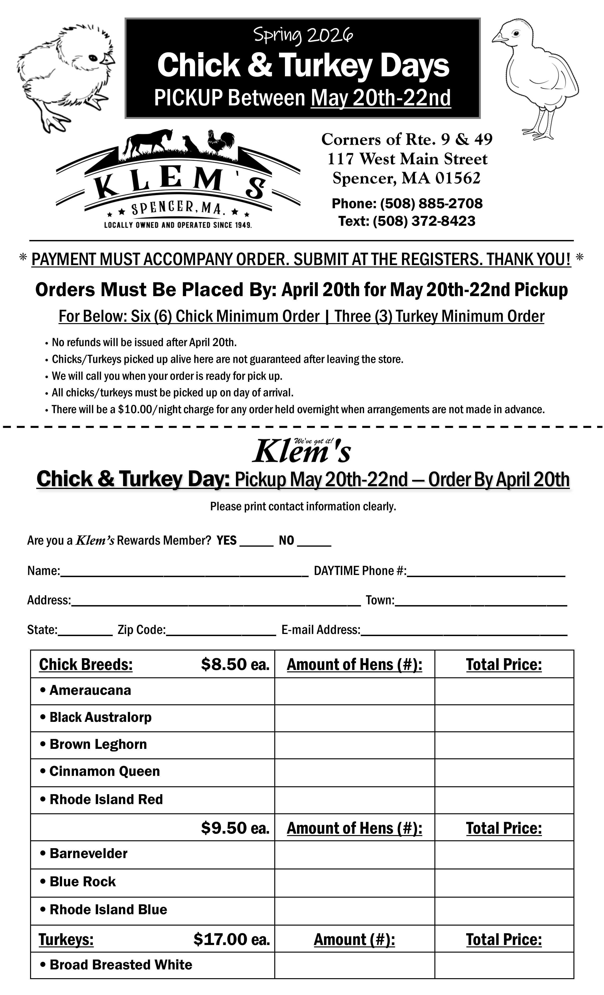 Completed Chick & Turkey order forms can be turned in-store, into the registers!